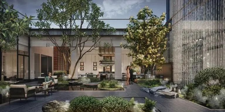 南区入门之后是一个下沉庭院,内涵约1000平米的下沉空间,并配有飞瀑景不雅观,营造出一种安好取奢华的氛围。